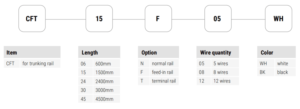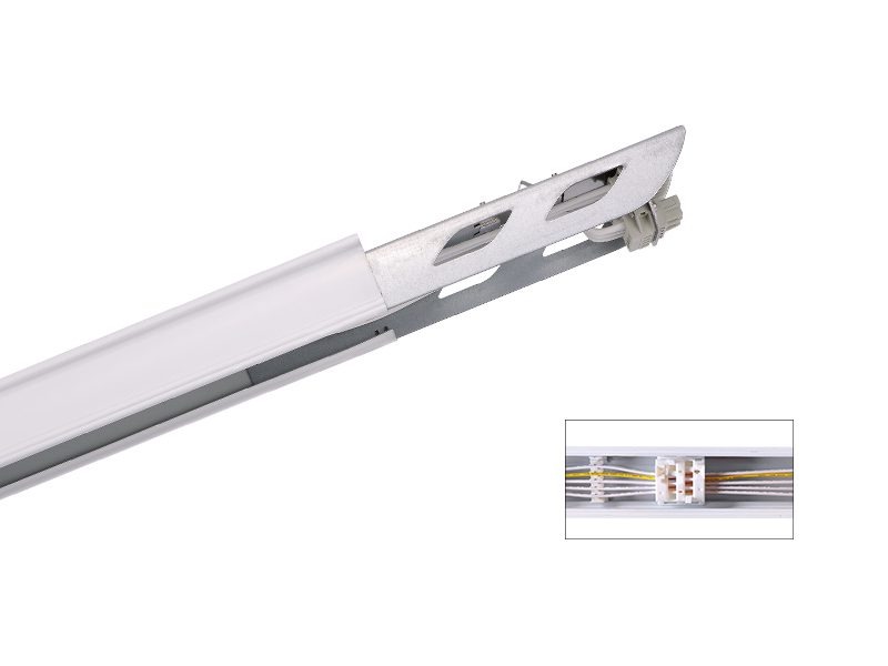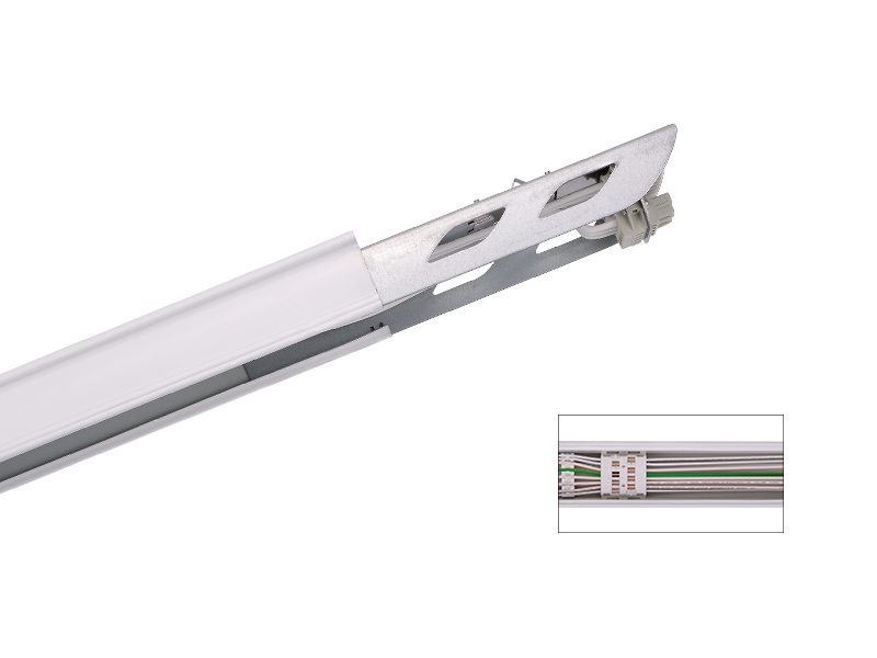 - Pre-wired trunking rail, plug & play, tool-free for installation