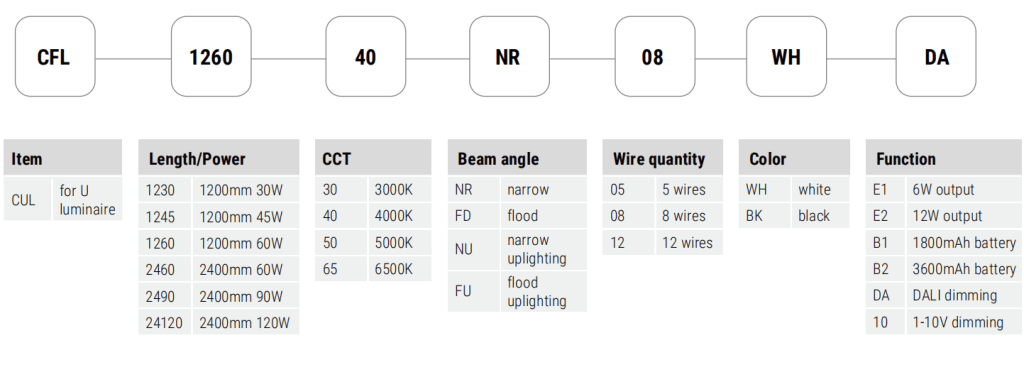 30W, 45W, 60W @ L1200mm